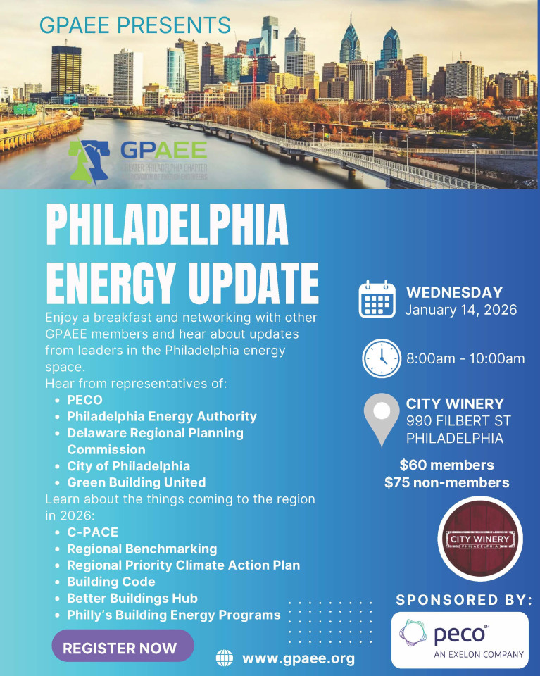 Enjoy a breakfast and networking with other GPAEE members and hear about updates from leaders in the Philadelphia energy space.